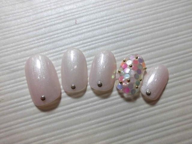 (クリックポスト発送込み) 可愛いパールピンクとホログラムのお花でネイルチップ ジェル使用作品
