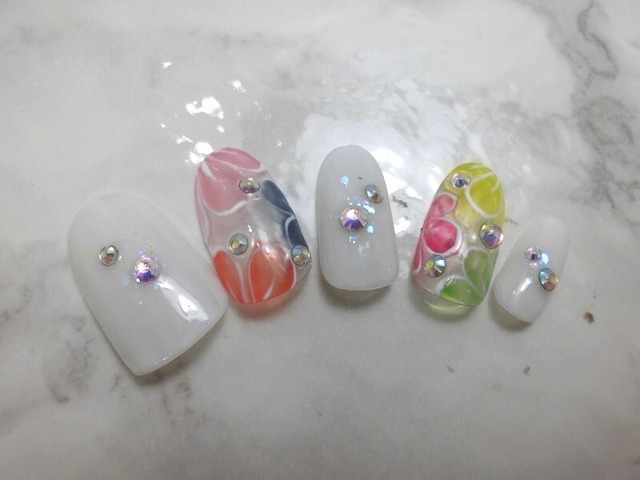 (クリックポスト発送込み) カラフルなクリアのお花でネイルチップ ジェル使用作品