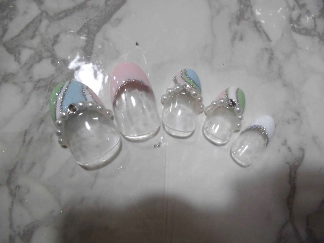 ☆複数個orその他商品との同封をご希望のお客様へ ・送料は 商品1個の場合の送料で設定しています。(同じ商品の場合は下記に送料を記載しています) 同封内容によって送料が変わりますのでご購入前にご連絡ください。 ・ご連絡無くご入金いただいて不足がある場合は後程メールにてご連絡させていただき、ご確認後に当方で送料を訂正させていただきます。 (不足分のご確認が5日間取れない場合は残念ではございますがキャンセル扱いとさせていただきますのでご注意ください) (銀行振り込み・コンビニ払いなどのお支払いで、こちらで操作ができない場合は差額をお振込み後の発送になります) 使用ジェル・・・Presto(4番,54番,122番,209番) パール、クリアストーン、オーロラシルバーラメ (見本はミデイアムオーバルチップ使用) ☆商品について 画像は右手5本分です。左手用は右手用を左右反転させた同デザインとなります。合計10本分のセットです。 ※ご覧のモニターによって実際の仕上がりと異なったカラーに見えている場合があります ※チップのサイズや種類によって見本とデザインの感じが異なる場合があります ※4枚目の画像は発送時の梱包例です。 台紙に両面テープで固定してエアークッション(プチプチ)で梱包して発送いたします ※5枚目の画像のケースやワンタッチ加工をご希望の方は、下記の有料オプションにでご購入下さい ※メーカー廃盤の為、無くなり次第ケースでの発送はできません (デザインによってケースは当方で決めさせていただいていますので、お客様からのご指定はお受けしていません) ☆サイズ選び ※デザインが決まりましたら ・画像の7種類の中からお好みのチップを選んでいただき、オプションでチップの種類をご選択後、チップ番号オプションで右手&左手のチップサイズを記載してください ※(例: 右 1.5.4.5.8 左 0.5.4.6.8)の順番で記載してください ※初めて購入される方やサイズが合うかご心配な方は、計測用ネイルチップを有料オプションでご一緒にご購入していただくことをお勧めします。 ☆ネイルチップをご購入の方 ネイルチップは、なるべく綺麗に作成しますが、 色むら、チップの裏への液流れ、チップ作成時に固定している両面テープなどがある場合があります。 ご理解の上購入よろしくお願い致します! ☆お急ぎの方はご注文前にお問い合わせください。 使いたい日がありお急ぎの方は、日時指定が可能な(宅急便コンパクト・クロネコヤマト宅急便・佐川急便)発送をお選びください。 ※時間指定はオプションでお選びいただけます その他の発送の場合指定ができませんので、使いたい日に到着しない場合があります。 ・ご入金確認後、制作に取り掛かります ※ワンタッチチップ加工をご希望の方は乾かすのに4日程プラスのお日にちがかかります ・余裕をもってご注文ください ☆ご注文いただいてから作成いたしますので、チップの種類やサイズによってはサンプルとデザインの感じが語となる場合がございます。 ☆計測用ネイルチップ有りの場合(有料オプション) ・ご希望のネイルチップの種類の物をお送りいたします。 ・作品をお作りする前に、まず計測用ネイルチップをお送りします。 ・ご入金後に、計測用ネイルチップを発送します。(即日〜2日以内に発送) ・計測用ネイルチップが届きましたら、地爪に合うチップNo.を左右10本分親指→小指の順番にご連絡ください。 (例: 右 1.5.4.5.8 左 0.5.4.6.8) ・作品の製作を開始します。 完成しましたら、発送させていただきます。 ※ご試着後にご連絡をいただいてからの作成&発送となりますのでお時間に余裕をもってご注文下さい。 ☆計測用ネイルチップ不要の場合 ・ご自身の爪に合うチップをカーブ幅は、やわらかいメジャーなどで地爪のカーブに沿って計測してください。 ・オプションにてご希望のチップの種類、左右10本分のチップNo.を親指→小指の順番でご注文ください。 (例:ロングオーバル、右 1.5.4.5.8 左 0.5.4.6.8) ・ご入金後にネイルチップの製作を開始します。 ・完成しましたら、発送させていただきます。 ☆お支払い確認後速やかな発送を心がけていますが 仕事やご注文の状況により、当日~5日以内と、お時間の余裕をいただいています。 ※時間帯にもよりますがご注文後翌日~2日程度でほぼ発送させていただいていますが 状況に寄りますのでご理解の上、購入よろしくお願い致します! ※ご注意点 ・お支払い後のキャンセルはご遠慮ください。 ・ご覧のモニターによって現物と色味が若干異なる場合があります。 ・ 既存のパーツなどは大きさの変更ができませんので、サンプルと違うサイズや形のチップをお選びの場合、雰囲気が異なります。 ・ プチプチに包んでの簡易包装となります。 ・ ワンタッチ加工をご希望の方は別途有料オプションでご購入下さい。 ・チップの種類やサイズの入力もれなどでご連絡がつかない場合、2週間経過した時点でキャンセルとさせていただきます。 ☆クロネコヤマ