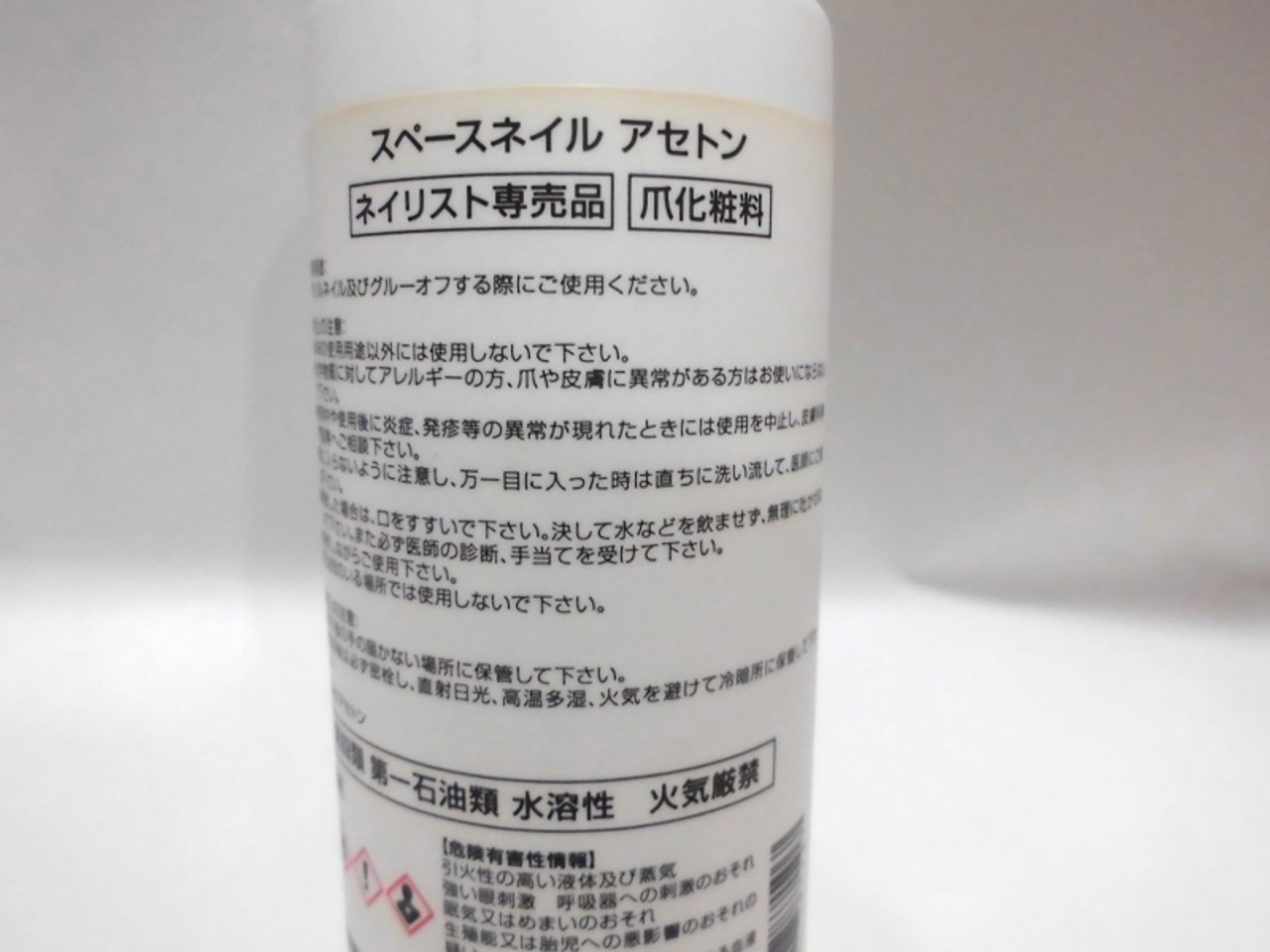 限りなく純度の高い高品質なアセトン。スカルプチュアを取り除くときに使用します。