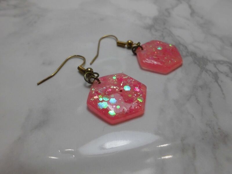 (イヤリングへの変更可能) ピアス(六角形 ピンク)