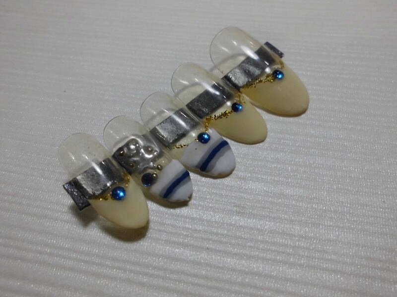 (クリックポスト発送込み) フレンチとボーダーで ジェル使用作品 ※1セット限定価格