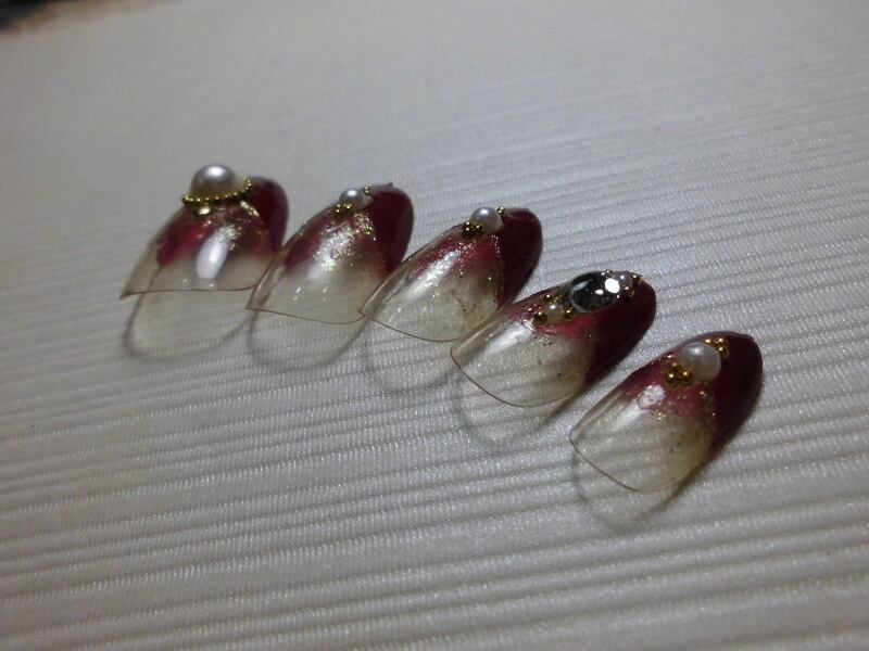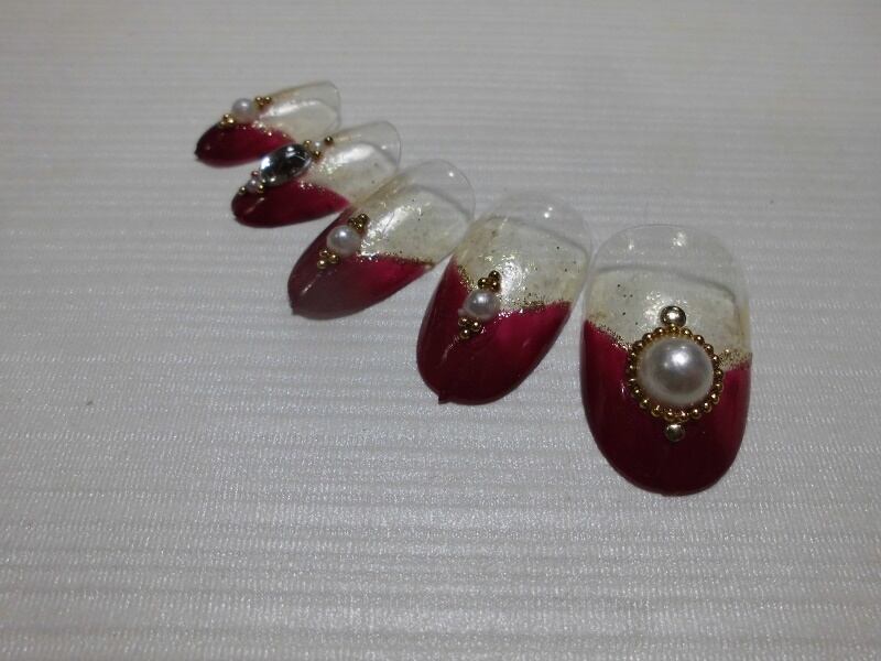 (クリックポスト発送込み) フレンチにパールストーン ジェル使用作品 ※1セット限定価格