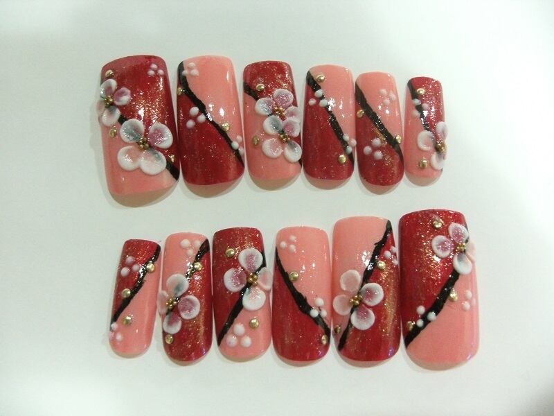 2色ベースに和柄で(マニキュア使用)