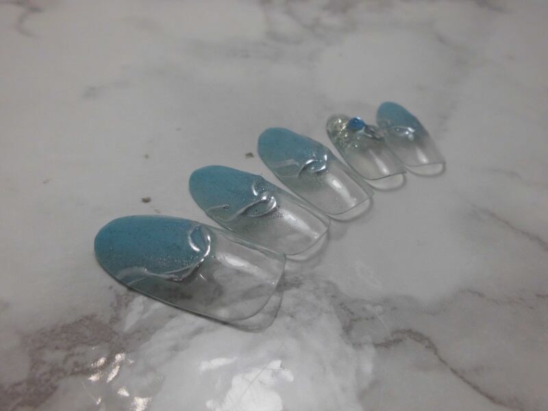 シルバーラメ、クリアストーン、アクアストーン
