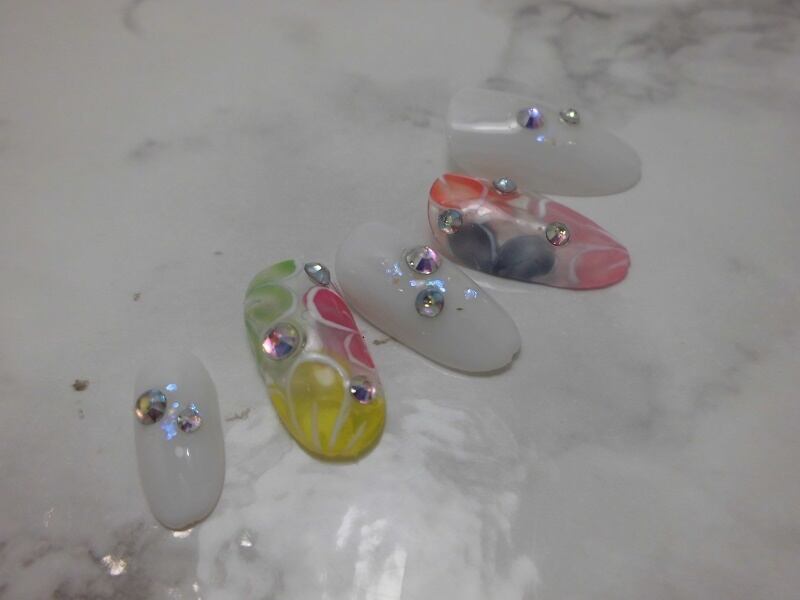 (クリックポスト発送込み) カラフルなクリアのお花でネイルチップ ジェル使用作品
