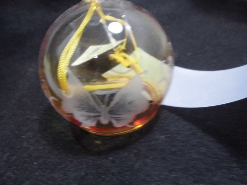 オレンジのグラデーション風鈴に蝶々 グラスリッツェン