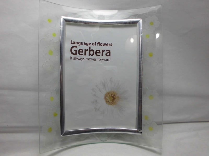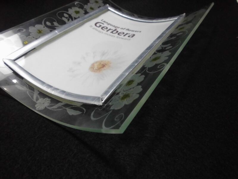 100均一のカーブガラスフレームの裏に削って 花をかきました